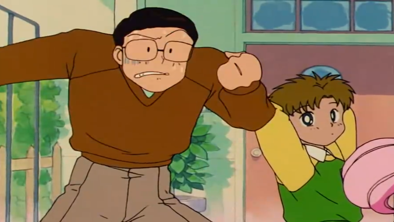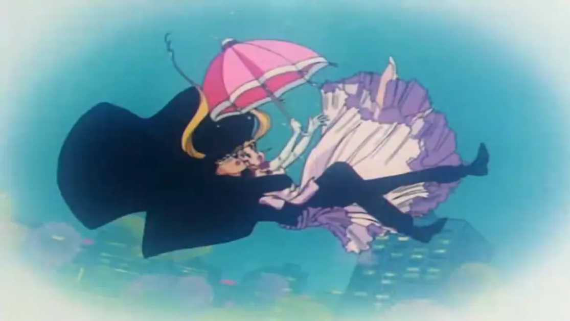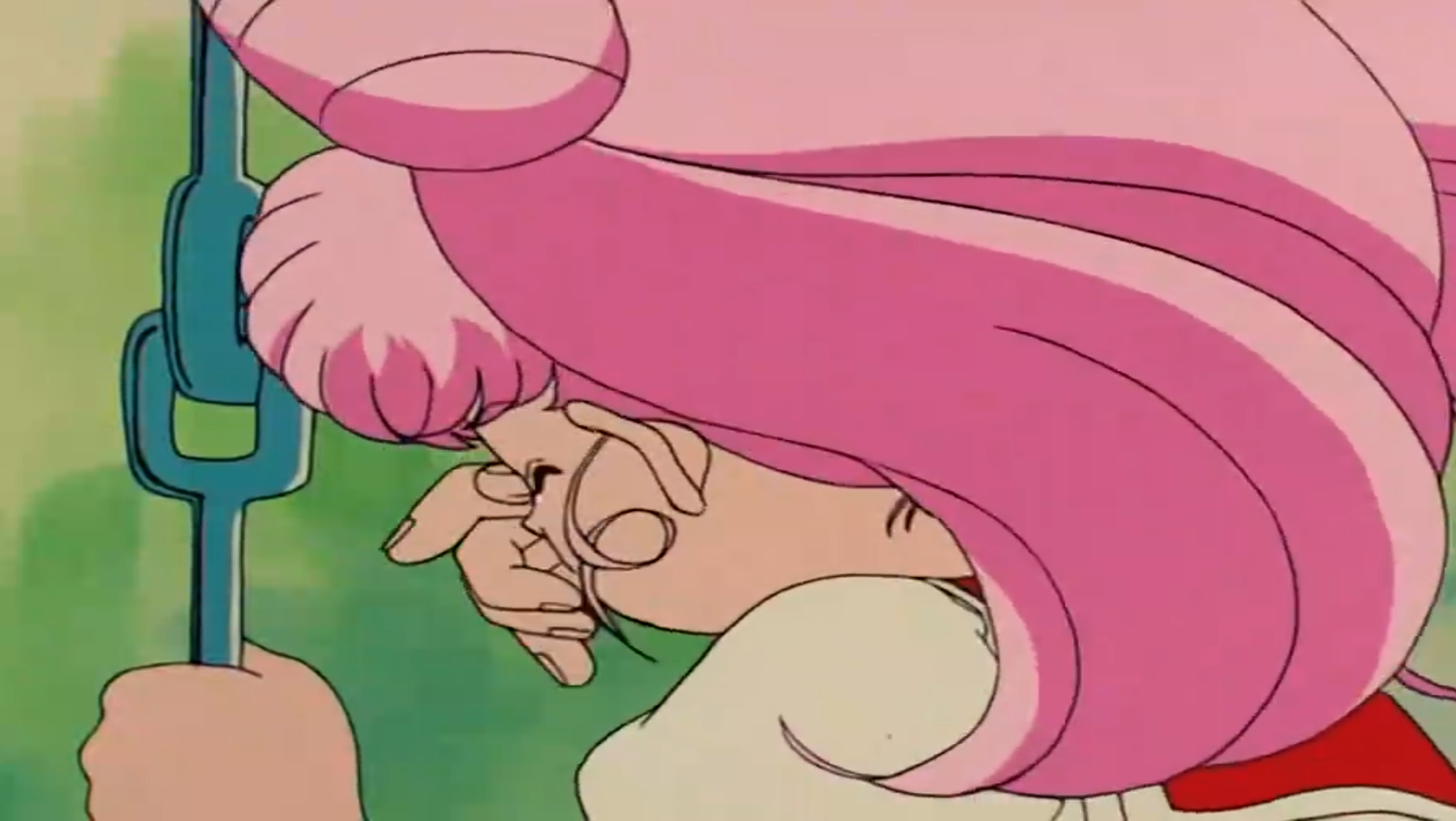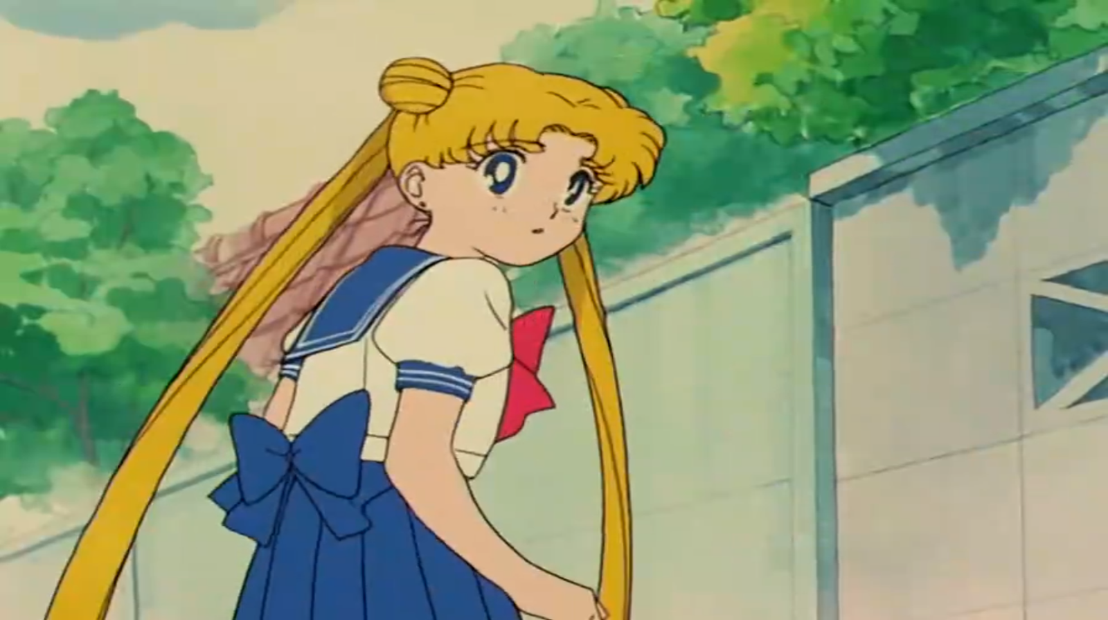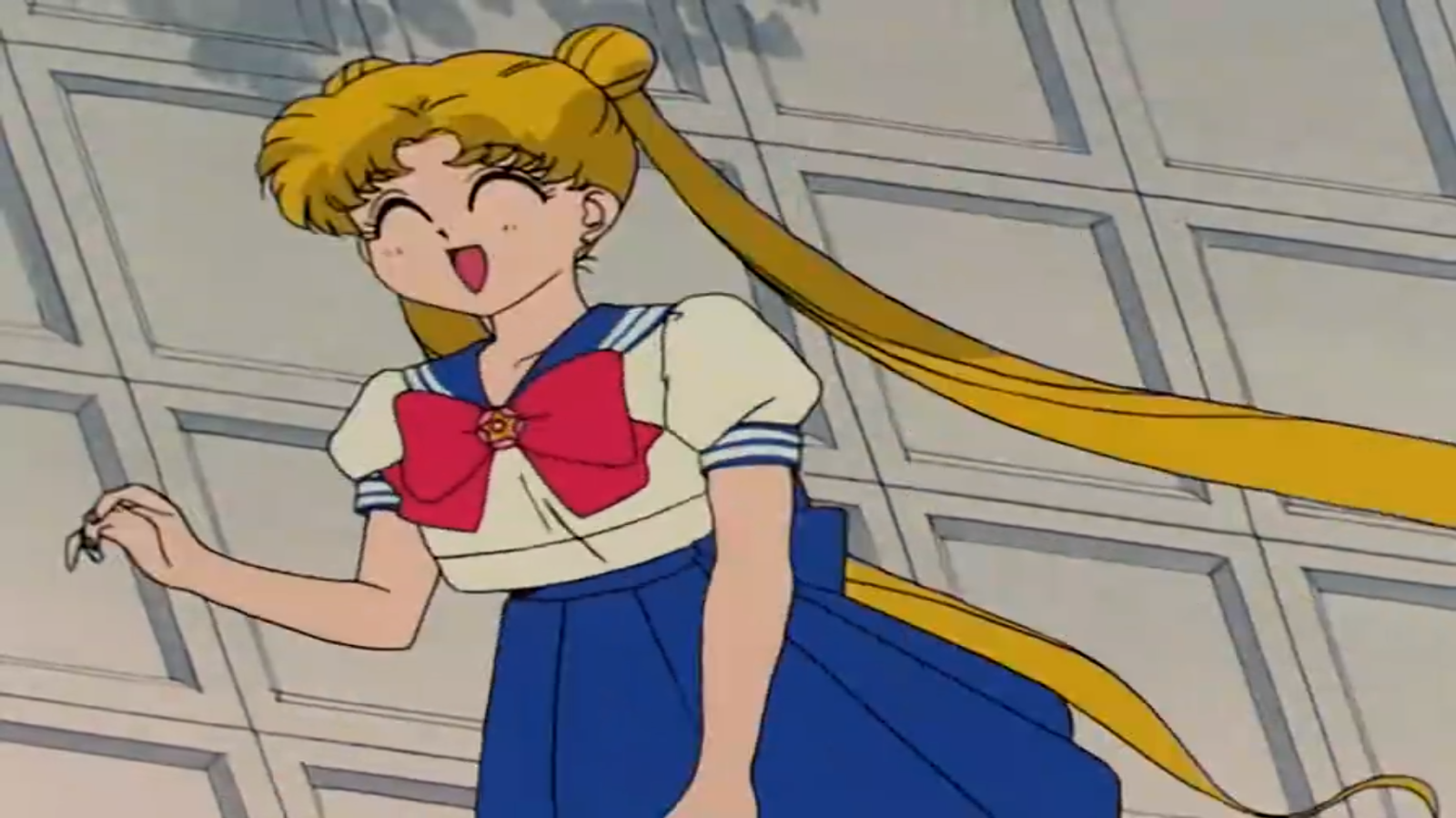 Chibi Usa has fled from home and Usagi's looking for her. Mamoru happens to be jogging around in his very interesting choice for sportswear and he's the one to call out her name when he sees her.