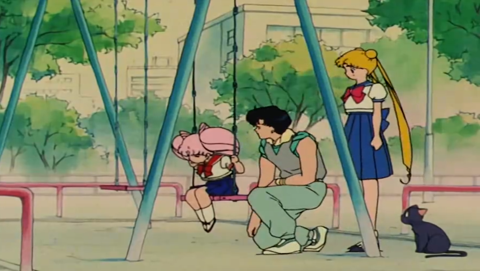 When they find her she's being a pouty little creature, and it takes Mamoru's gentle voice before she decides to go back home. I can't get out of my head that he's an orphan, it adds a layer of sweetness that he's good with kids.