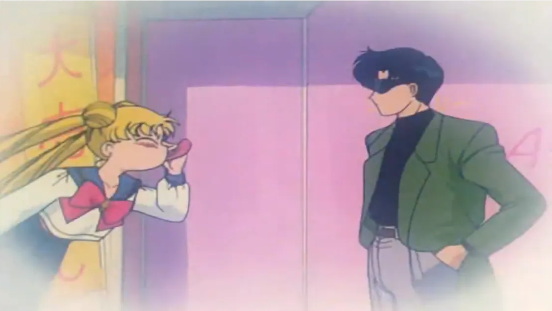 This time Usagi puckers up for a kiss, and Mamoru's all too happy to lean into it.
